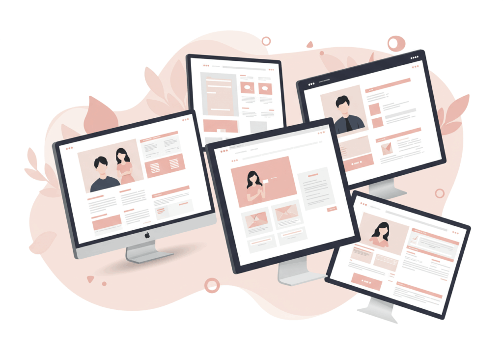 コーポレートサイト、サービス紹介サイト、採用サイト、ブログなど、目的に応じた最適な設計を行います。